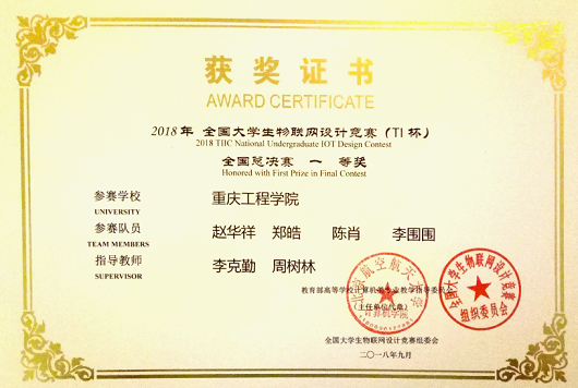 2018年TI杯全国大学生物联网设计竞赛(全国总决赛)近日在无锡太湖国际博览中心落下帷幕,来自全国5个分赛区遴选出的100余所高校、120支团队经过两天的激烈角逐。我院李克勤、周树林老师指导的《无网覆盖随行通》通过与上海交通大学,武汉大学,四川大学等高校的同台竞技,最终获得了本次比赛一等奖,同时还荣获本次比赛最佳人气奖。