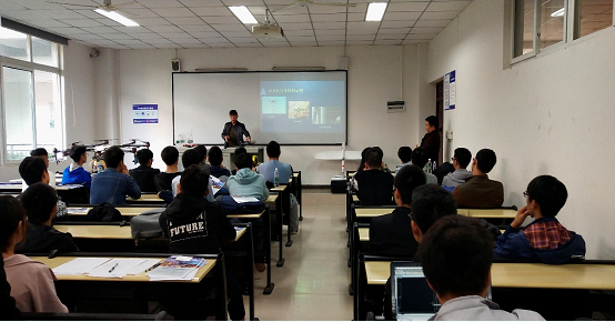 根据工信部关于中国制造2025中提到的民用无人机发展意见及指引,结合我院校企合作实际的情况以及无人机开放实验室项目的需要,在2018年11月2日下午,我们邀请了重庆飞狐航空科技有限公司为同学们举办了一场别开生面的无人机科普活动。
