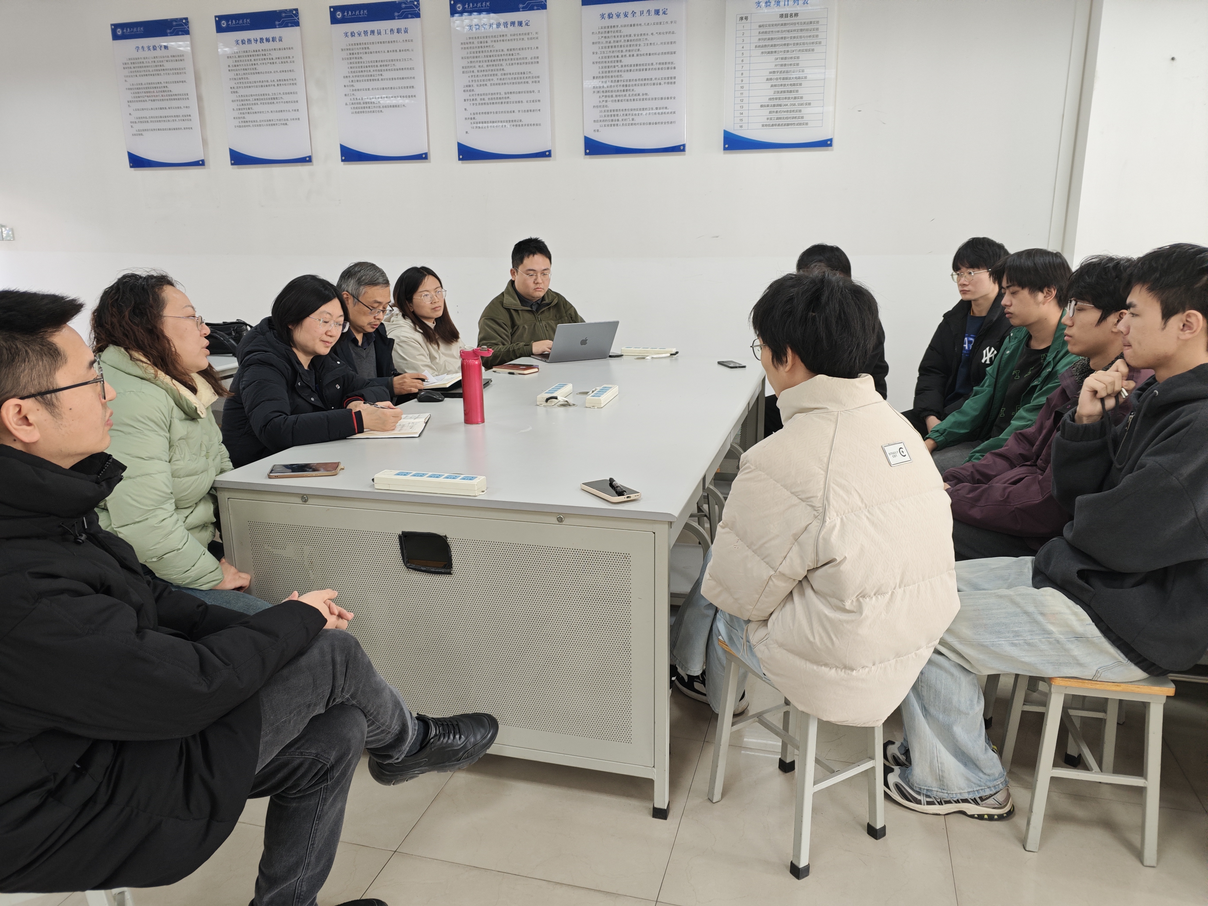 针对学生反馈的各类问题,与会教师及负责人现场给予回应与解决方案。对于课程学习难题,明确将向相关任课教师反馈,建议电路分析课程从实操引入理论,优化计算机网络课程授课方式,同时完善实验耗材检修与补充机制;对于作息安排问题,说明上课及晚自习时间为固定设置,需坚持以保障学习效果,鼓励学生合理规划时间适应节奏;对于就业相关困惑,指导学生结合兴趣明确专业发展方向,利用宽基础课程优势培养专项能力,通过多渠道关注招聘信息,针对性制作多份简历并突出自身优点与项目经验,同时强调企业会为实习生提供专项培训,鼓励学生增强自信。