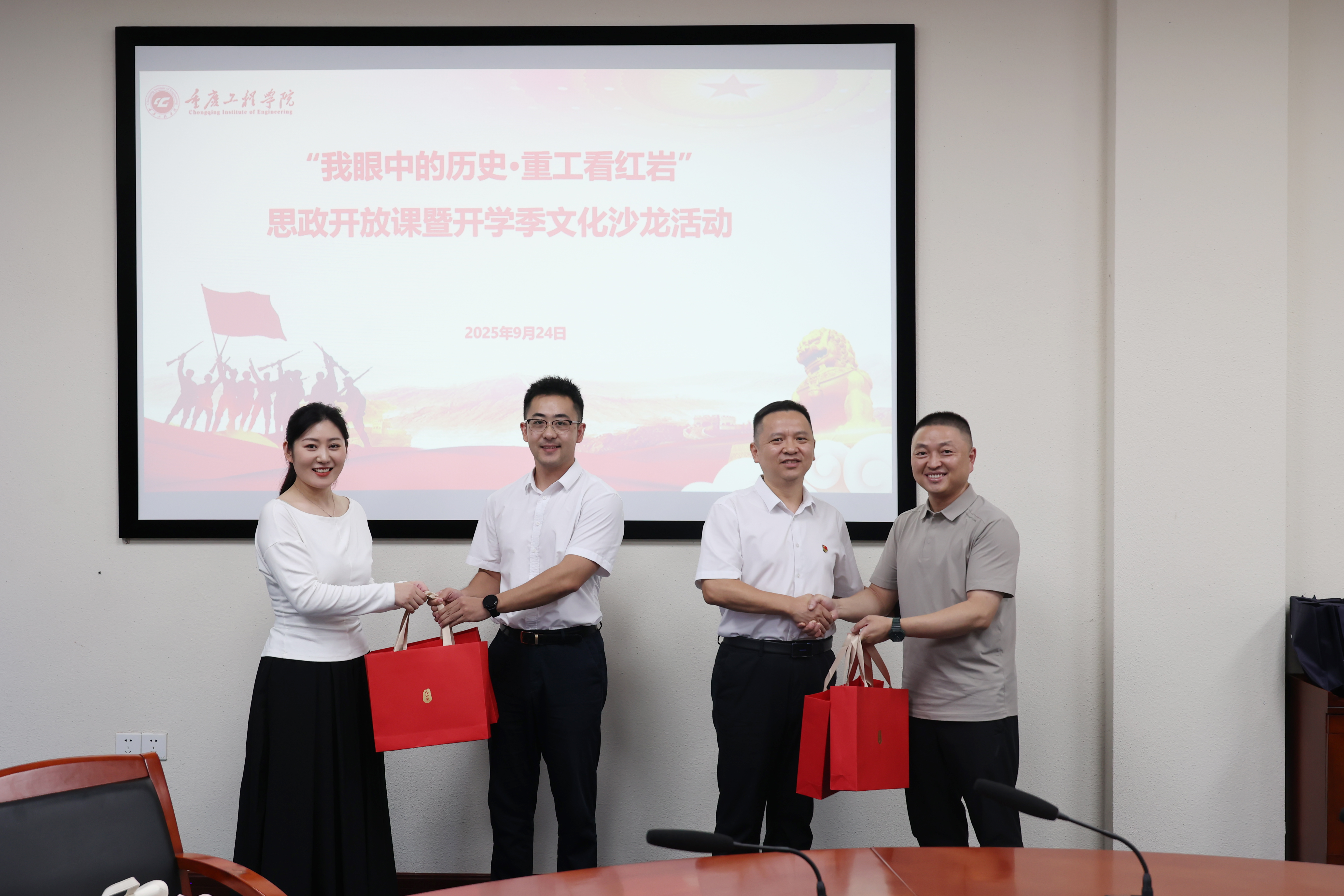 活动尾声,红岩文化中心向重庆工程学院赠送了红岩主题相关类书籍与文创产品,丰富了学校的红色教育资源,也为后续开展相关学习教育活动提供了有力支持。