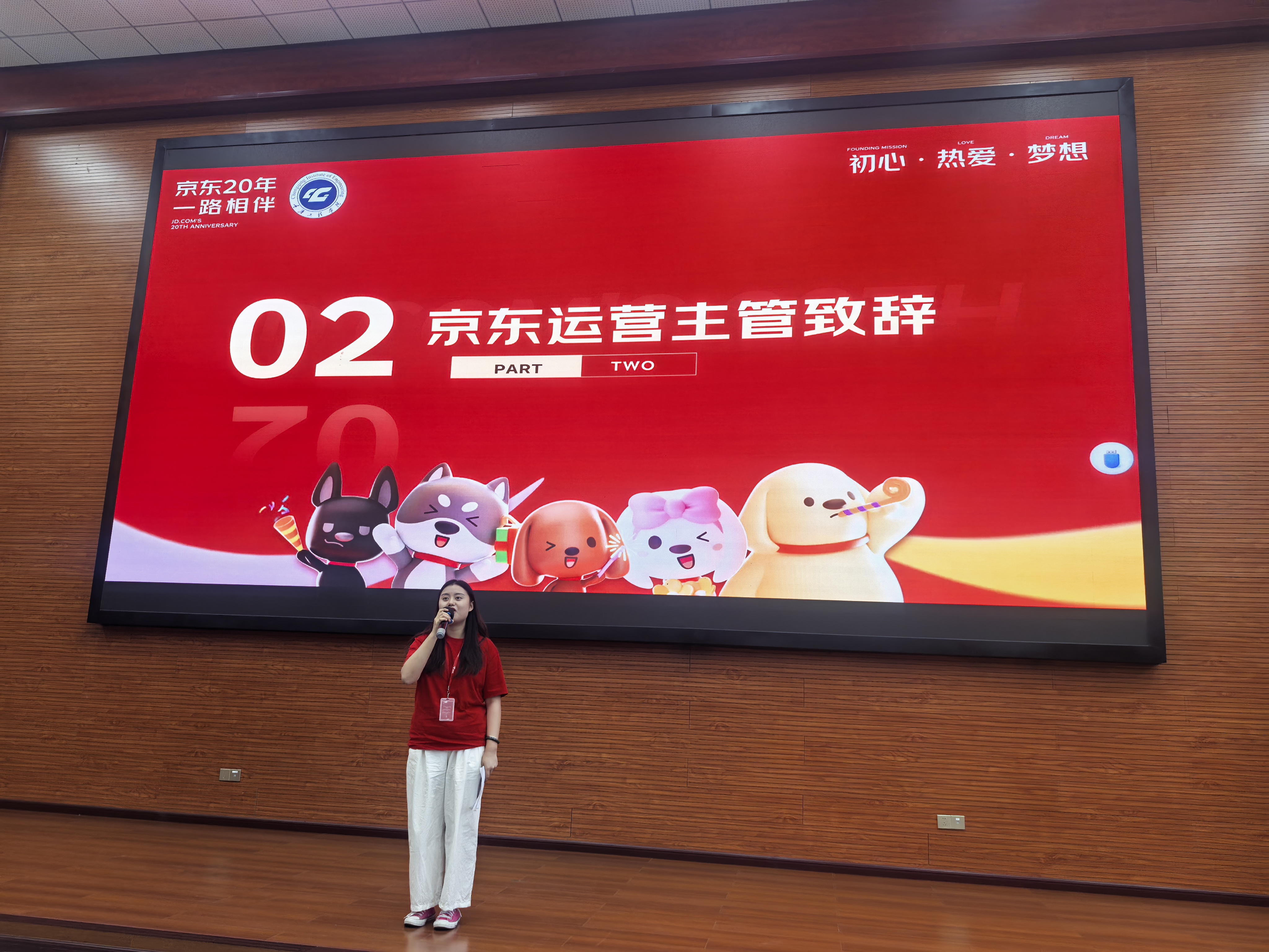江苏京东信息技术有限公司众客服运营部重庆工程南泉站点运营负责人康乃馨,重庆工程学院校长助理、数字经济与管理学院院长简玉刚,学院副院长徐先航,数字营销系主任朱凤、副主任陈颖,京东项目负责人曾霞,实训指导教师卫莉、彭璟、胡杨利,以及辅导员吴文红受邀出席,23级营销专业3-5班全体学生共同参与。活动由23营销5 班学生黄媛媛、张璐主持。
