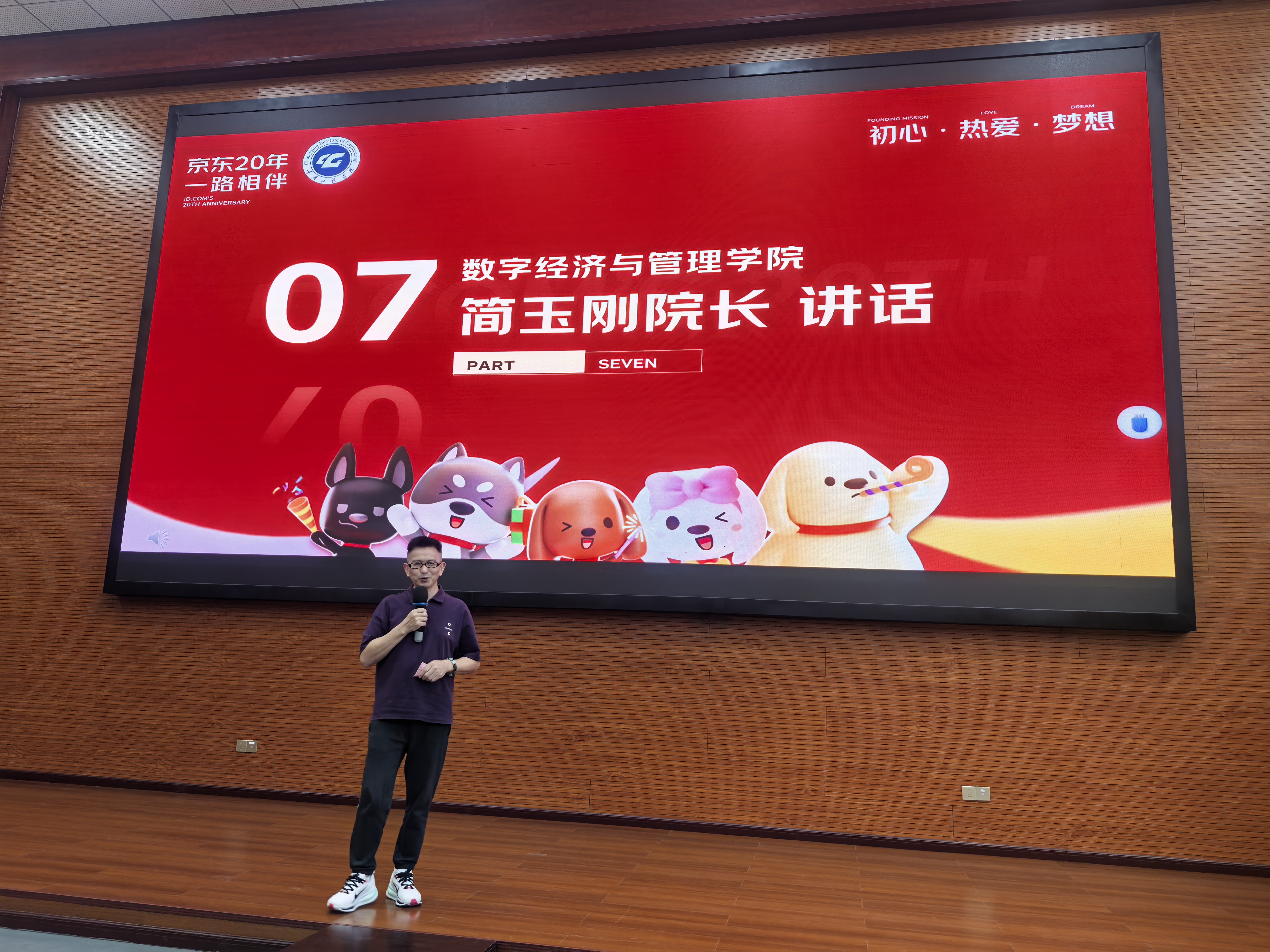 活动最后,简玉刚院长发表总结讲话。他先祝贺了获奖学生,强调学院重视产教融合与校企合作,京东项目是人才培养的重要探索。他希望同学们以实训为契机提升能力,学院也将持续深化与企业合作,为学生搭建更多实践平台。