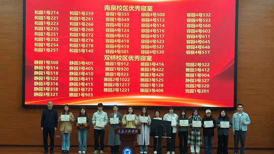 表彰环节中,学院党总支书记尚伟与王燕楠老师共同为院级优秀寝室学生代表颁发荣誉证书,希望其发挥榜样引领作用,带动全院寝室共同进步。