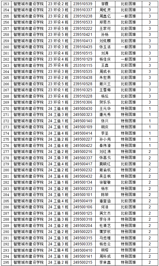 重庆工程学院2025-2026学年家庭经济困难学生国家助学金初审名单公示表