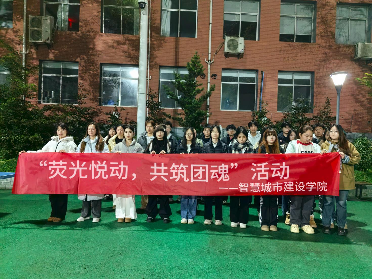 本网讯(文/肖程刚 图/周岚鑫) 为锻炼同学们的身体素质能力,缓解学业压力,丰富同学们课余生活。智慧城市建设学院团委第二课堂实践部与体育部于12月3日在第一教学楼至和园一号组织开展了“荧光跃动,共筑团魂”活动。