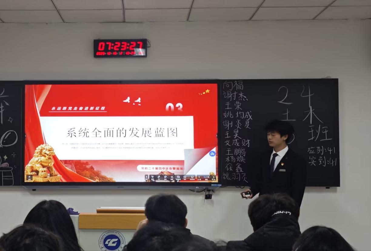 参与宣讲的党员表示,此次活动既是全会精神学习的实践,也是初心使命的锤炼。参加宣讲的同学们表示,未来将以全会精神为指引,深耕专业学习、投身实践服务,践行“技能成才、强国有我”誓言,为学院发展和中国式现代化建设贡献青春力量。