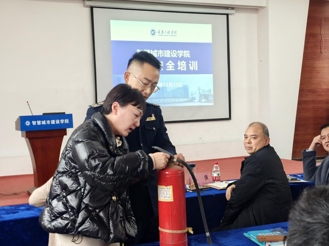 胡教官不仅从理论上向大家传授各种安全防范知识,而且列举了近期广东汕头重大火灾事故,结合近期香港大埔宏福苑的高层火灾的真实案例,教训深刻,发人深省,并举一反三结合单位消防安全进行了讲解,并传授了如何对初期火灾进行扑救,高层火灾逃生自救、办公室火灾发生的应急处理。