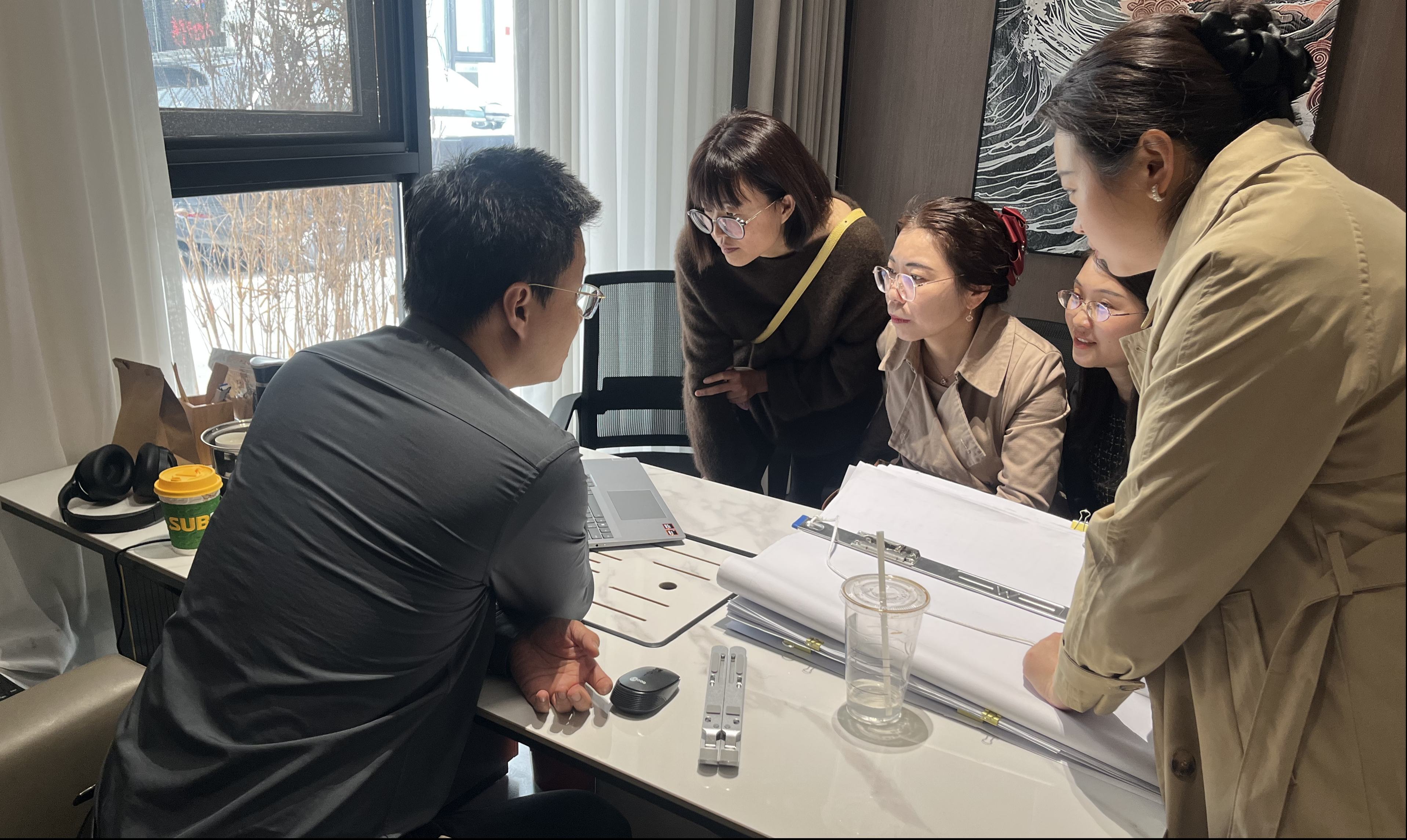 在公司总经理王总的办公室,学院教师团队参观了公司技术研发中心,深入了解BIM技术在装饰装修领域的创新应用成果。作为深耕建筑数字化的科技型企业,艮石精界在BIM装饰深化设计、装配式装修技术应用等方面积累了丰富实战经验。企业展示的近年来大型公共建筑、高端住宅精装修BIM应用案例,让教师们直观感受到数字化技术对传统装修行业的深刻变革。林颖老师表示,市场对既懂装修工艺又掌握BIM技术的复合型人才需求迫切,这正是学院开设精装修工程师班的重要背景。
