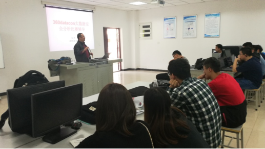 本网讯(文,图/官节福)我校80位学生组建10个参赛队积极参加国内首届360杯“DataCon大数据安全分析”比赛,目前大赛线上初赛正在如火如荼进行。根据大赛时间安排以及同学们在答题过程中遇到的问题,2019年4月16日16:00,我们邀请网络工程系张林老师在实训楼301室对参赛学生进行专门辅导。张林老师是在手头事情较多的情况下专门抽出时间对同学们进行知识辅导和比赛答疑的。