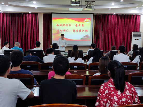 面试采取单面的形式,主要考察同学们对党建工作的理解、组织和协调能力,以及相关工作经历等。面试过程中,面试同学先进行简短的自我介绍,后对面试官的问题进行回答,每位同学都对丰富和完善党建工作提出了自己的想法,且展现了自己各方面的能力和素质,并依据自己的工作特点和工作能力选择了合适的意向部门。