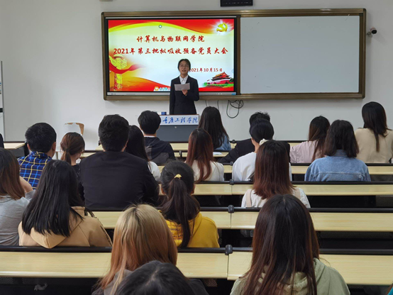 本网讯(文/图 潘晓宇)为了进一步健全和完善支部组织建设,加强组织凝聚力,2021年10月15日(星期五)12时20分,计算机与物联网学院党支部于6106、6107教室召开了2021年第三批拟吸收预备党员大会。