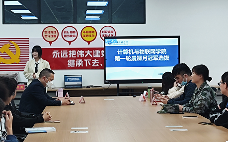 本网讯 (文/图 罗森文)为进一步提升晨课质量,锻炼同学们的演讲表达能力,2022年3月21日,我院在7教806开展本学期第一次晨课月冠军评选大赛。此次评选大赛邀请了覃华伟书记、邢美喆老师、张运老师、郑阳春老师、梁甜老师作为此次评选大赛的评委。