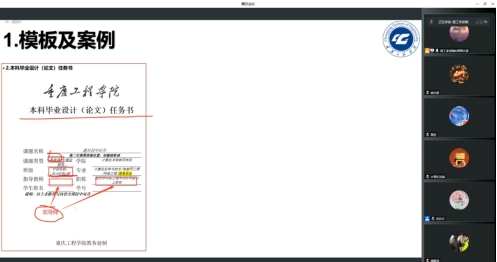 随后,他分享了任务书撰写案例。他从任务书封面各项目的填写,到任务书中课题主要任务与要求均做了详细指导。