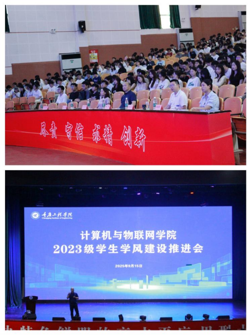 本网讯(图/罗浩 文/苏炳燕)结合学校学风建设整体要求,为进一步强化2023级学生学风建设,助力学生明确学习目标、科学规划发展方向,9月15日晚,计算机与物联网学院于学术报告厅召开2023级学生学风建设推进会。学院班子成员、专业教师代表、辅导员代表及2023级全体学生共同参会,为大三学子的学业发展与职业规划“保驾护航”。