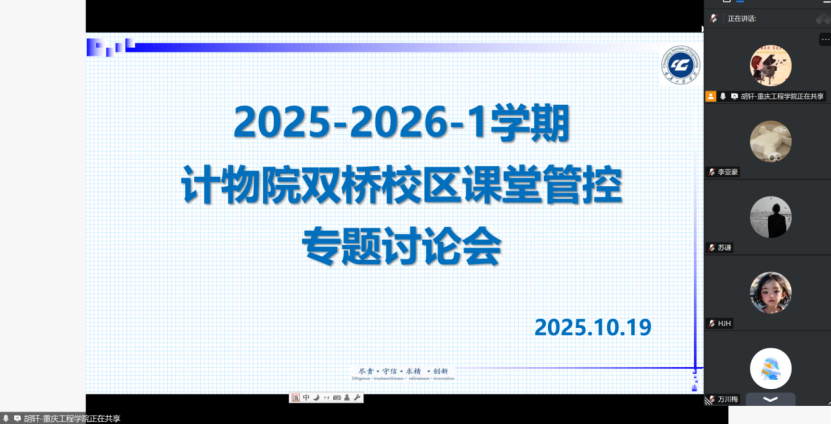 本网讯(图/文 李亚豪)2025-2026-1学期开学第6周周末晚上8点,计物院双桥校区在线上开展了课堂管控专题讨论会。