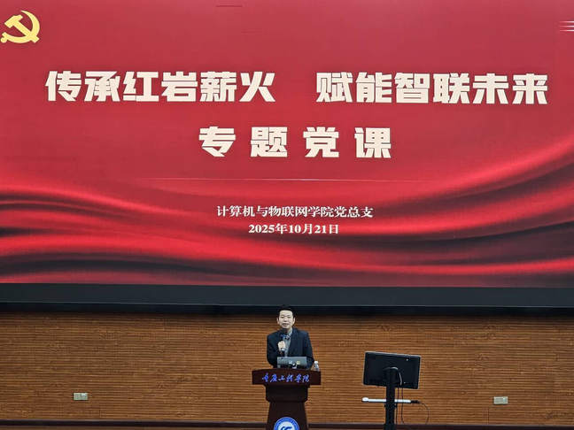 为深入落实党建工作要求,将红色精神与学科发展深度融合,10月21日,计算机与物联网学院党总支于7807会议室开展书记讲党课专题活动。党总支书记黄涛同志以《传承红岩薪火、赋能智联未来》为主题,围绕红岩精神的核心内涵展开解读,讲授了一堂兼具思想深度与专业特色的专题党课,生动阐释了红岩精神在新时代的传承价值,学院入党申请人及以上阶段共计200余名师生参与此次党课培训。