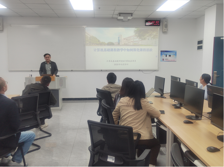 活动伊始,李帅力老师阐述了开展本次教研活动的背景与意义。他指出,计算机基础课程不仅是学生学习计算机科学的重要起点,更是落实“以文化人、以德育人”理念的重要阵地。在当前高等教育全面推进课程思政建设的背景下,教师应主动挖掘专业知识中的思想政治教育资源,将价值引领与技能培养相融合,实现“知识传授、能力培养与价值塑造”的有机统一。李老师强调,课程思政不是附加任务,而是教学设计的内在要求。教师应通过科学的教学设计和生动的课堂实践,让学生在掌握计算机技术的同时,树立正确的网络伦理观与社会责任意识,培养科技报国、服务社会的使命感。