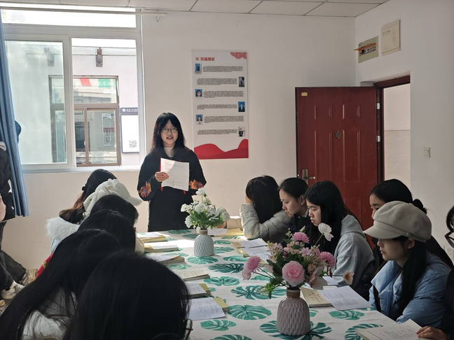 分享会在全体成员集体诵读红色经典篇章中拉开序幕。随后,三位学生代表依次登台,深情讲述了感人至深的红色故事。有的同学以《红岩》中江竹筠烈士的事迹为主线,展现了革命先辈坚定的理想信念;有的分享了“时代楷模”黄文秀在脱贫攻坚一线奉献青春的故事;还有的从家乡红色资源出发,讲述了本地革命先烈的英勇事迹。这些真实而动人的故事,让在场同学深刻感受到中国共产党人的初心使命和奋斗精神。活动最后,主持人对分享会进行总结,强调要将红色精神内化于心、外化于行,把学习成果转化为刻苦钻研、服务社会的实际行动。