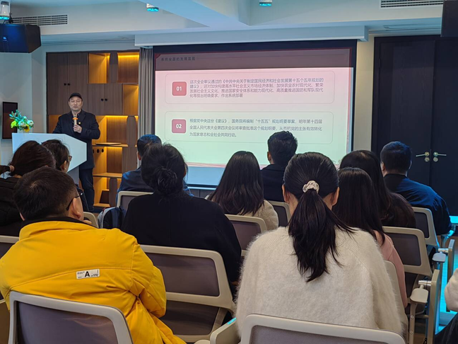 活动伊始,学院党总支副书记、院长围绕党的二十届四中全会精神作专题宣讲。宣讲紧扣关键时期党的宏伟目标、鲜明指引、宏伟蓝图三个方面,结合高等教育改革发展实际,深入解读了全会提出的“科技自立自强水平大幅提高”“建设现代化产业体系”等核心要求。院长号召全体教师党员,要将革命精神与全会精神深度融合,立足教学科研一线,以改革创新为动力,努力培养更多适应中国式现代化建设需要的高素质专门人才。