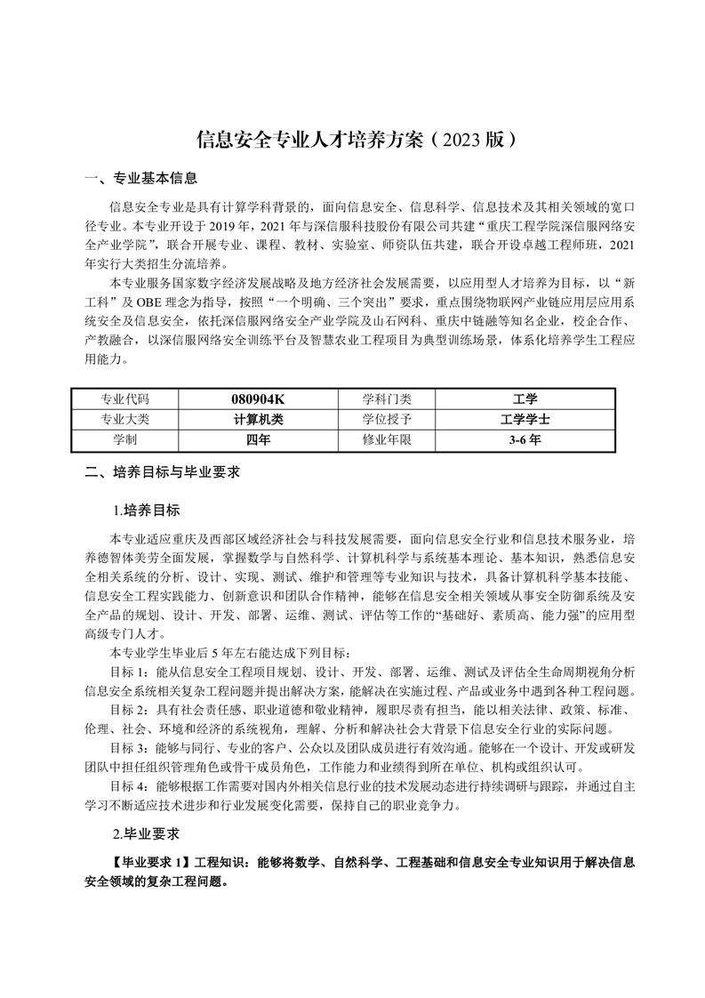 信息安全专业人才培养方案(2023 版)