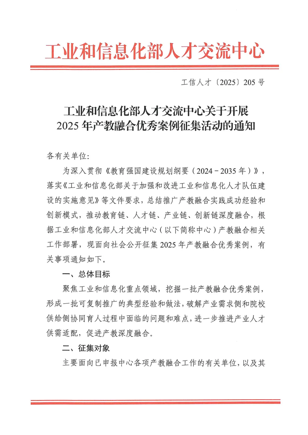 工信部关于开展2025年产教融合优秀案例征集活动的通知