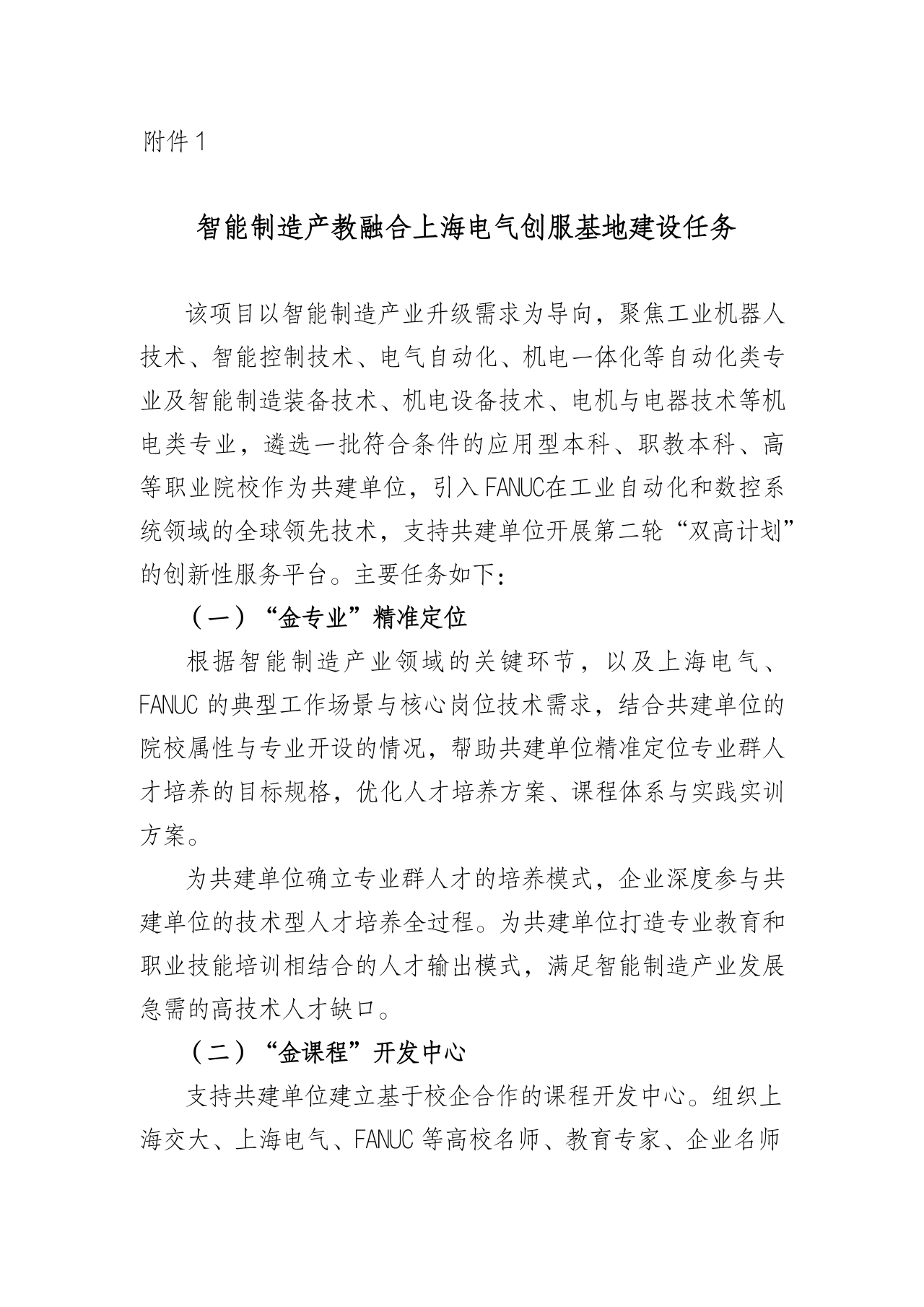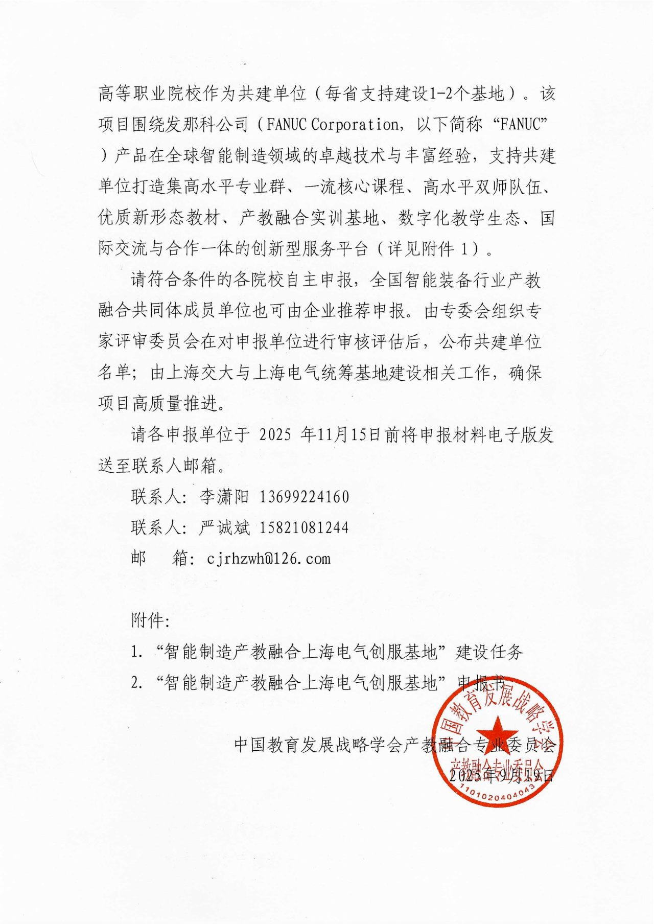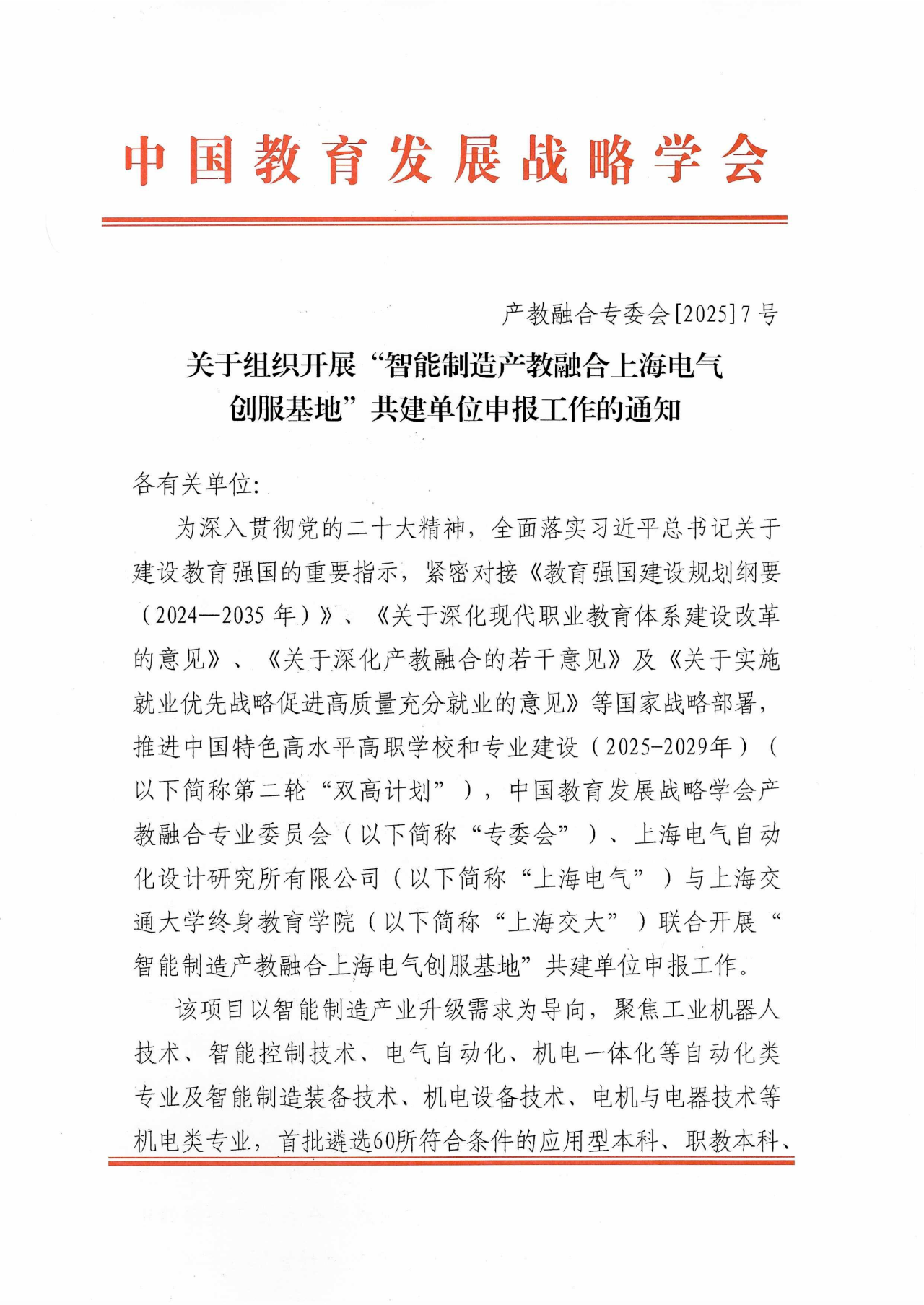 关于组织开展“智能制造产教融合上海电气创服基地”共建单位申报工作的通知