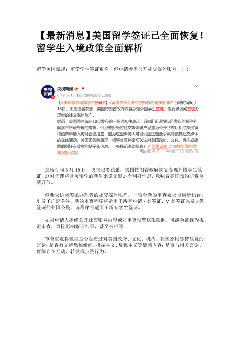 【最新消息】美国留学签证已全面恢复!