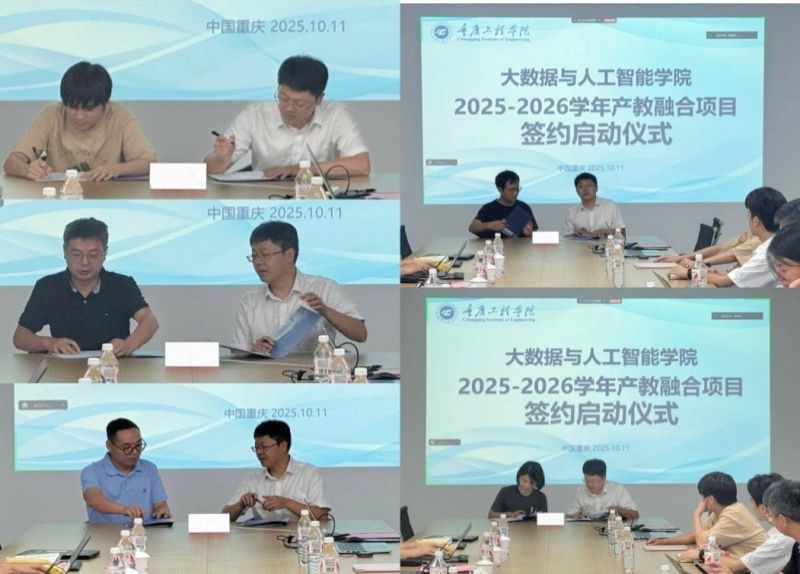 本网讯(文/图 大数据与人工智能学院 杨孟凡)10月11日下午,大数据与人工智能学院2025—2026学年产教融合项目签约及启动仪式在第七教学楼7205会议室举行。学校党委副书记、常务副校长张业平出席并讲话,学院院长李钦,党总支副书记宁俊龙,副院长廖宁、吴平、周勇及学院全体专任教师参加仪式并见证签约。