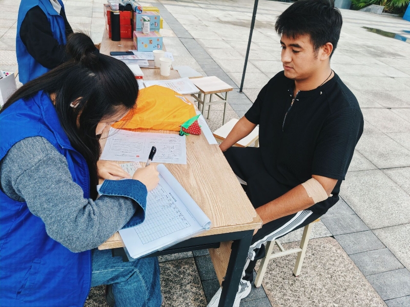 活动现场,大足中心血库工作人员与志愿者分工协作。志愿者引导到场同学分组排队,协助核对身份、填写信息登记表;工作人员依次为献血者完成血压测量、血液初筛等健康检测,合格者进入采血环节。采血后,志愿者及时递上温水、糖水与小点心,提醒术后休息及饮食禁忌。整场活动流程清晰,参与献血的近100名同学以实际行动诠释爱心,在捋袖捐赠中传递生命温度。