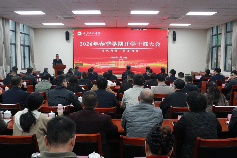 本网讯(文/图 党委宣传部)春风浩荡启新程,策马扬鞭开新局。2月26日,我校2026年春季学期开学全体干部大会召开,全面部署新学期重点工作,动员全校干部以“开局即决战、起步即冲刺”的姿态,推动学校“十五五”规划开好局、起好步。校长孙芳城,党委书记陈长虹等全体在家校领导出席会议,全体中层干部参会,会议由陈长虹主持。