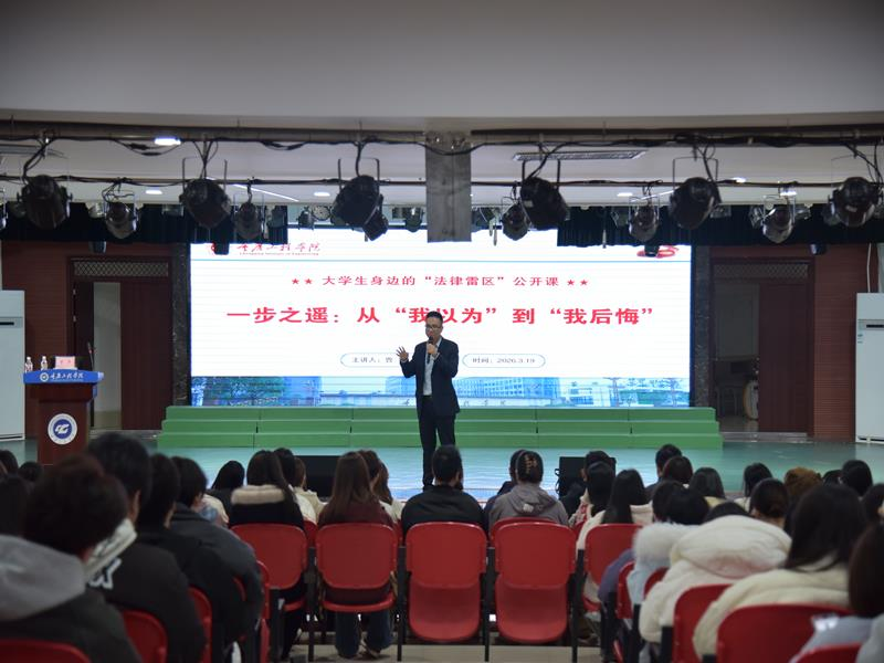 本网讯(文/双桥校区管委会 范洋 图/双桥校区管委会 杨世玲、黄守强)为深入推进法治校园建设,切实增强广大师生法治意识和安全防范能力,3月19日下午,双桥校区在办公楼报告厅举行“一步之遥:从‘我以为’到‘我后悔’——大学生身边的‘法律雷区’”主题法治公开课。校区管委会职能机构工作人员、学生工作办公室全体人员等600余名师生代表参加本次活动。校长助理、双桥校区党工委副书记邹均主持活动。