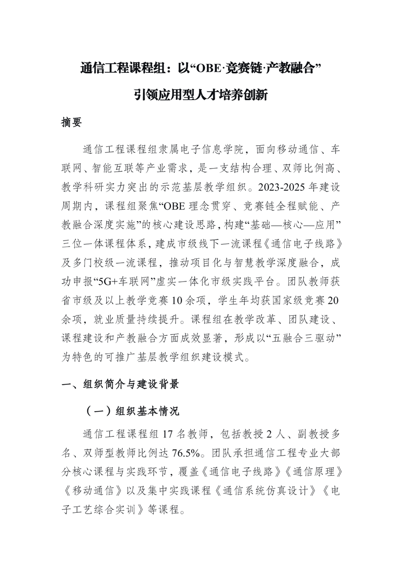 示范基层教学组织建设案例-通信工程课程组