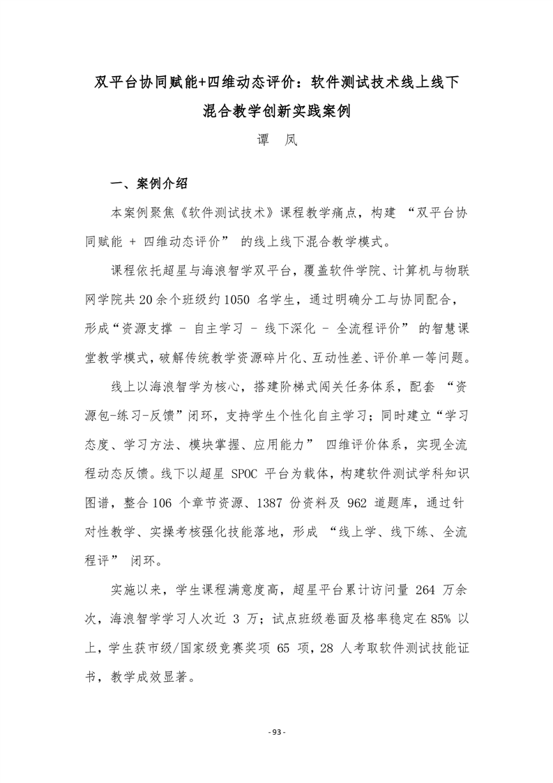 智慧课程、课堂案例 - 双平台协同赋能+四维动态评价:软件测试技术线上线下混合教学创新实践案例