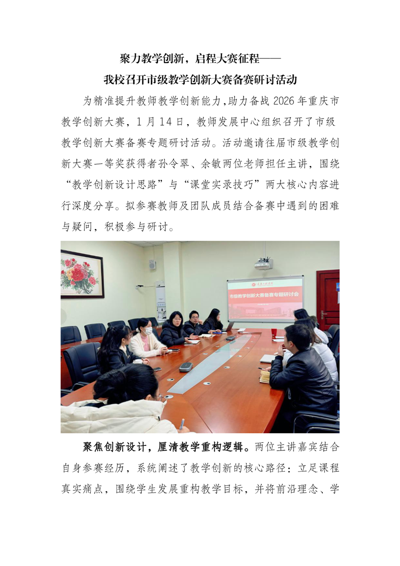 聚力教学创新,启程大赛征程——我校召开市级教学创新大赛备赛研讨活动