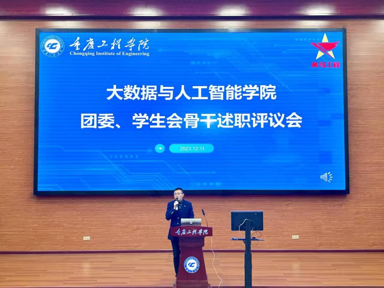 (文/图 软件与人工智能学院 辜虹蕊 罗磊)12月11日晚,大数据与人工智能学院在7807召开2023年大数据与人工智能学院团委、学生会骨干述职评议会。会议由学生会主席团负责人夏强斌主持,大数据与人工智能学院党总支副书记宁俊龙、分团委书记王惠俊出席会议,学院团委、学生会全体成员及云智志愿服务队各品牌项目负责人共70余人参会。