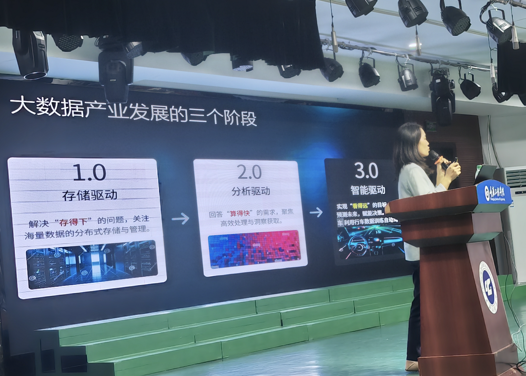 大数据系主任司利红结合重庆市“33618”现代制造业集群和区域数字经济发展,向新生们讲解了大数据产业的广阔前景,重点介绍了大数据专业的核心课程体系、学习方法与实践路径,勉励同学们在数据驱动的时代把握机遇、勤学笃行。