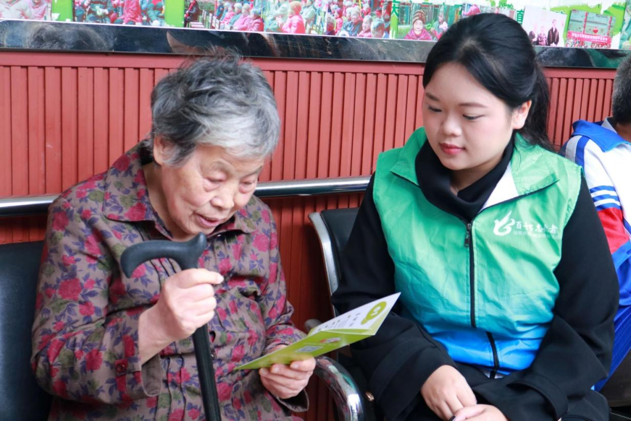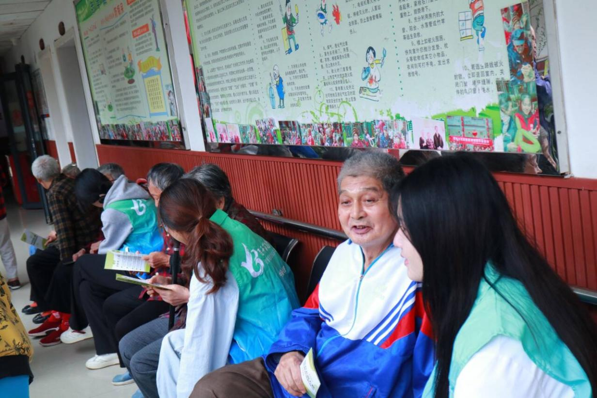 随后,志愿者们围绕“结核病防治”主题展开了系统而生动的科普宣讲。他们精心准备了图文展板与宣传手册,并用亲切的方言,将专业的防治知识转化为通俗易懂的日常叮嘱,从传播途径、症状识别到科学预防,细致讲解,有效提升了老人们的防护意识。宣讲结束后,志愿者们便自然地分散到老人身边,开展起贴心的个性化服务:有的手持手册蹲坐一旁,针对具体问题耐心答疑;有的搀扶老人在春日庭院里边散步边聊天,认真倾听他们的往事与心声。阳光下,青春的热情与岁月的沉淀相互交融,关切的眼神与慈祥的笑容彼此呼应,现场始终洋溢着温馨融洽的动人氛围。