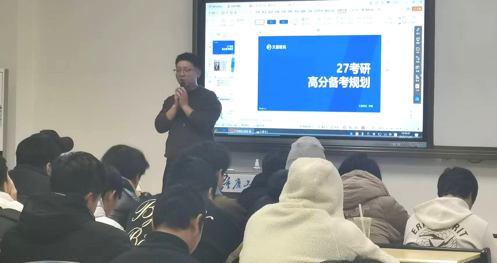 本网讯(文/图 大数据与人工智能学院 敬夫)为帮助2025届专升本同学明确考研目标,科学规划备考路径。11月23日,大数据与人工智能学院就业科特邀文都考研资深规划讲师罗鹏老师,为同学们带来了一场精准务实的考研规划指导讲座。