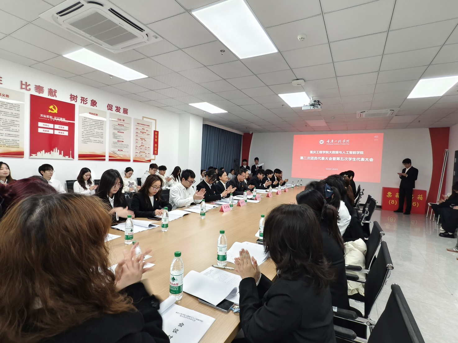 本网讯(图 王欢 叶贵玲/文 王惠俊)11月25日,大数据学院在7205召开重庆工程学院大数据与人工智能学院第二次团员代表大会暨第五次学生代表大会,会议宣读了共青团重庆工程学院委员会、重庆工程学院学生会、中共重庆工程学院大数据与人工智能学院总支部委员会批复;听取并审议了王惠俊同志代表共青团大数据与人工智能学院第一届委员会作工作报告;审议了重庆工程学院大数据与人工智能学院第五次学生会工作报告。党总支副书记宁俊龙讲话,他向全院广大学生致以亲切的问候和良好的祝愿,向一直处在学生工作一线的团学骨干表示衷心的感谢!他从四点给代表提出要求,一是胸怀理想,坚定信念。二是刻苦学习,增长才干。三是严格操守,加强修养。四是团结协作,服务学生。并希望广大青年要厚植家国情怀、涵养进取品格,以奋斗姿态激扬青春,不负时代,不负年华。