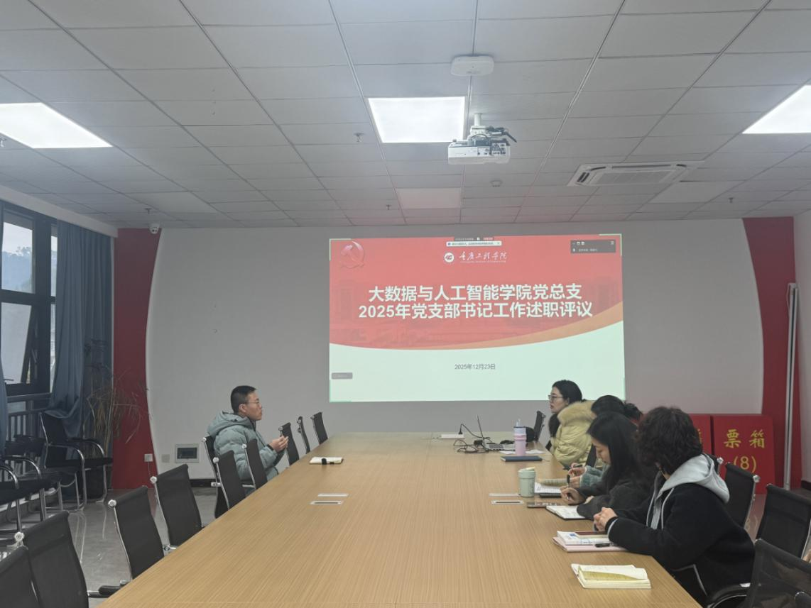 本网讯(图/文 大数据与人工智能学院 杨孟凡)为深入贯彻落实新时代党的建设总要求和党的组织路线,进一步压实党支部书记抓基层党建工作的第一责任人职责,提升基层党组织建设质量,大数据与人工智能学院党总支于12月23日上午,在7205党政联席会议室(主会场)并同步连线双桥校区(线上分会场),组织召开了2025年度党支部书记述职评议会。学院各支部委员参会。