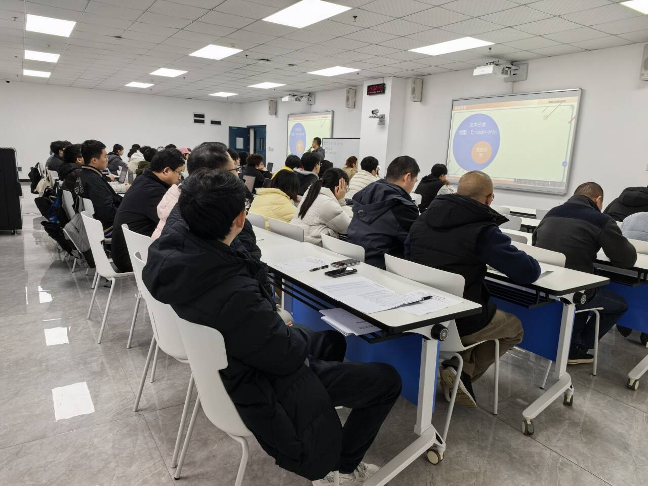 本网讯(文/图 大数据与人工智能学院 慕江林)近日,大数据与人工智能学院组织开展2025-2026学年第一学期院级公开课观摩活动。本次观摩课由慕江林老师主讲,课程为《语言模型应用开发实训》,授课内容聚焦“意图识别模块的开发——Encoder-only模型选型与Hugging Face模型加载测试”,充分体现了“技术驱动、应用落地”的教学理念。