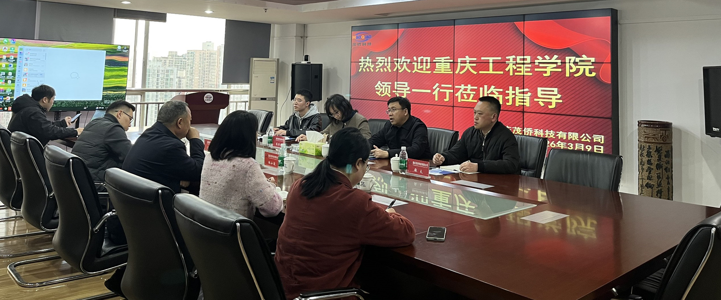 本网讯(文\图 大数据与人工智能学院 敬夫)为深入贯彻落实“访企拓岗促就业”专项行动,进一步深化校企合作,拓宽毕业生就业渠道,3月9日,大数据与人工智能学院人工智能系学科带头人廖宁、人工智能系主任陈怡然、就业科敬夫及专任教师蔡林一行,前往重庆茂侨科技有限公司进行走访调研,并与公司总经理杜总、冯总等企业负责人进行了深入交流。