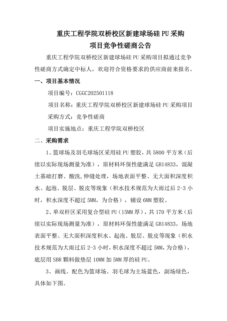 重庆工程学院双桥校区新建球场硅PU采购项目竞争性磋商公告