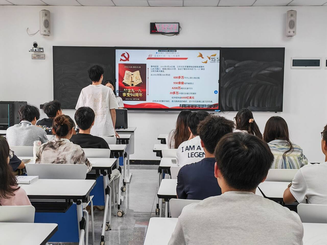 本次活动旨在回顾抗战历史,深入学习“九一八”事变。活动通过“抗战历史”、“走近9·18”、“历史知多少”、“勿忘国耻”四个板块,系统回顾1931——1945年中华民族14年浴血抗战史,在“历史知多少”互动问答环节,大家踊跃作答,在互动中重温历史,共同铭记九一八事变、东北三省沦陷、日本无条件投降等重大节点,现场气氛庄重热烈。部分同学还分享了杨靖宇、赵尚志的英雄故事以及自己的感悟,学习先辈精神,缅怀抗日英雄,活动最后,郎艳霞同志强调,“历史是最好的教科书,也是最好的清醒剂”。唯有铭记苦难,才能珍惜和平;唯有传承精神,才能开创未来。希望全体成员将这份历史记忆转化为努力奋斗的动力,为实现中华民族伟大复兴的中国梦贡献自己的力量。