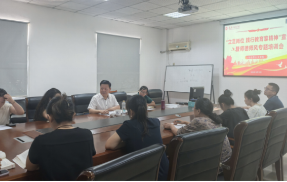 本网讯(文/图 马克思主义学院 刘爽)为深入学习贯彻习近平总书记关于教育的重要论述,全面落实《关于加强和改进新时代师德师风建设的意见》要求,引导全院教师自觉践行教育家精神,10月10日下午,马克思主义学院在学院会议室401组织开展“立足岗位,践行教育家精神”宣讲会暨师德师风专题培训会。学校党委书记、马克思主义学院第一书记陈长虹出席,学院全体思政课教师参加。会议由学院党总支书记王巧玲主持。