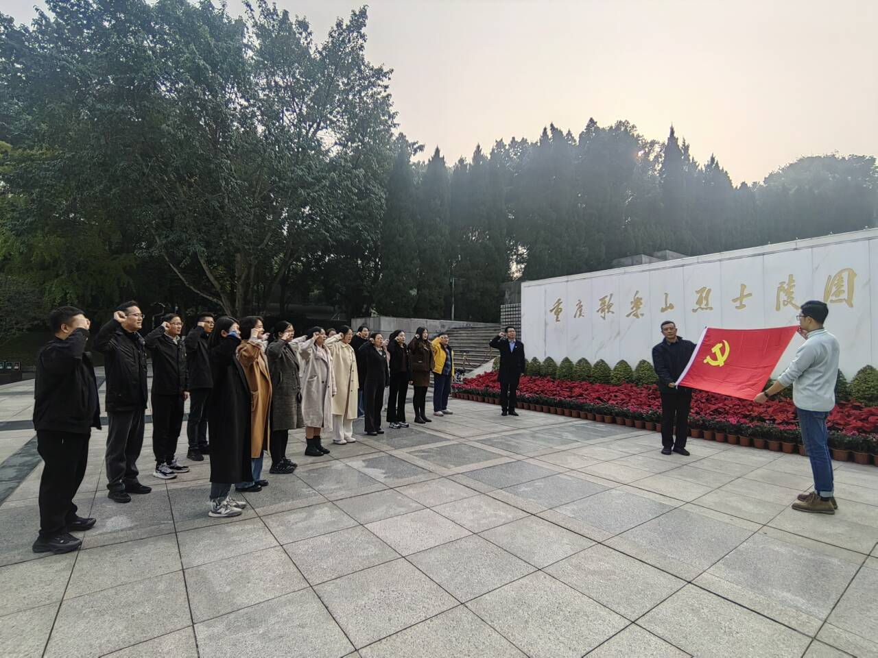 参观结束后,全体教师党员整齐列队,肃立于烈士墓前,面向鲜红党旗,高举右拳,重温入党誓词。铿锵有力的誓言在纪念园区久久回荡,不仅是对革命先烈的深切缅怀,更是新时代教育工作者对继承遗志、砥砺前行的庄严承诺。