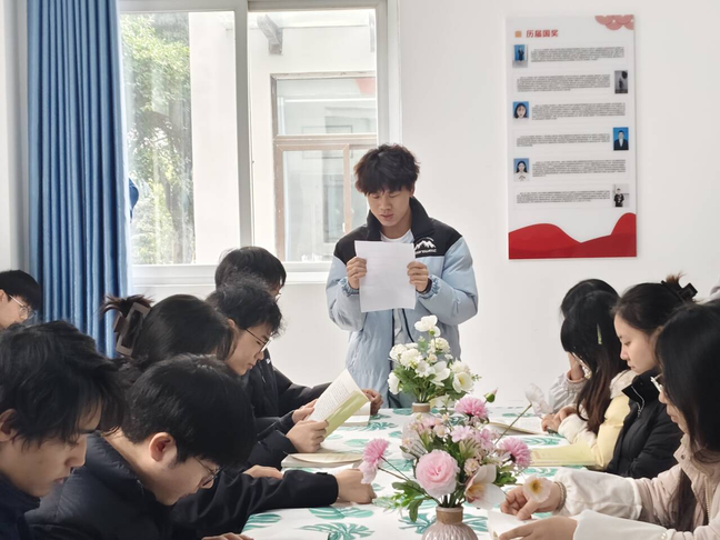 活动在全体成员齐诵一二·九运动经典爱国口号中拉开序幕。首先,活动负责人以“关键节点+精神内核”为主线,系统梳理了一二·九运动的历史背景、核心过程与时代意义,引导同学们深刻理解“以青春护家国”的精神内涵。