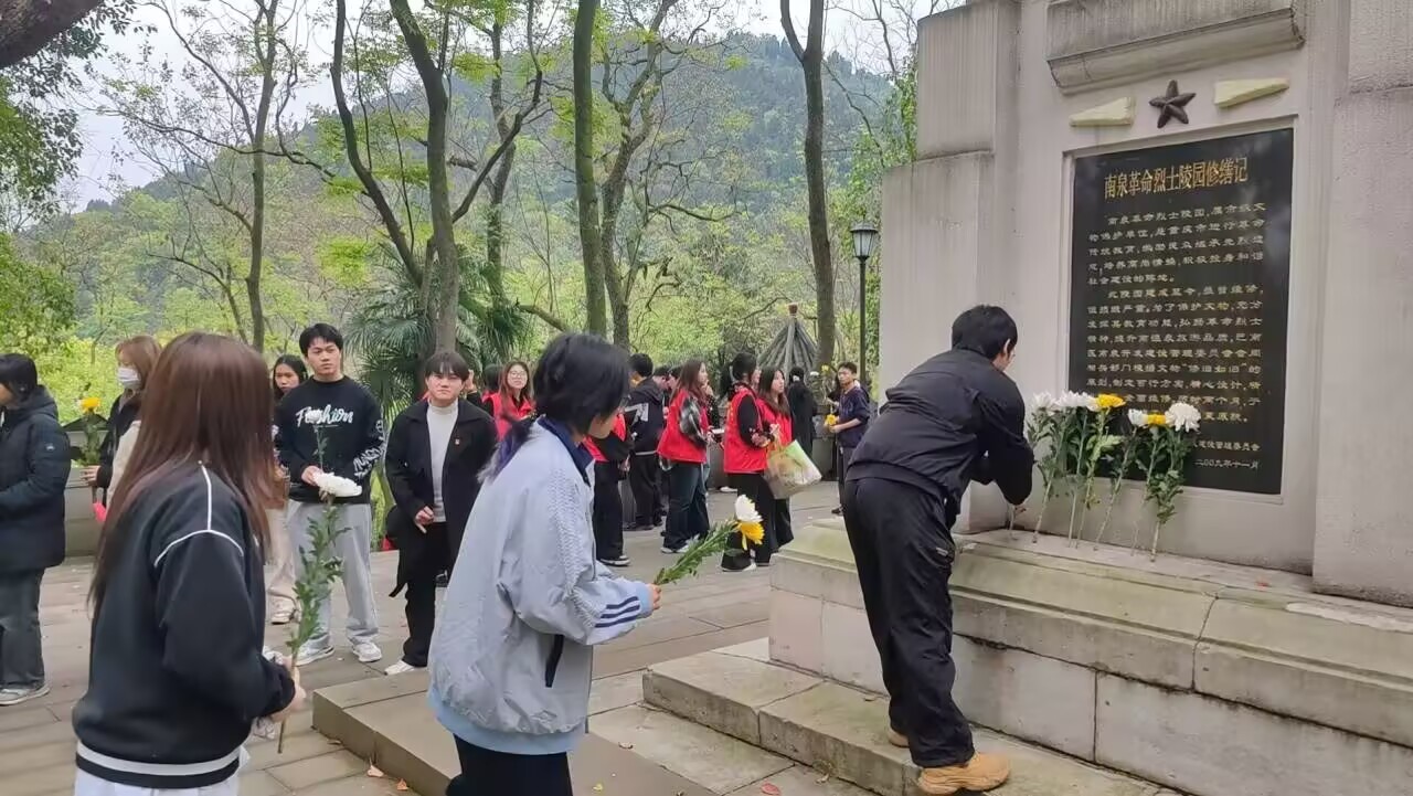 活动现场,全体成员怀着崇敬肃穆的心情,整齐列队于烈士纪念碑前,向为民族解放、国家独立和人民幸福英勇献身的革命先烈致以崇高敬意与深切缅怀。全体成员瞻仰烈士纪念碑,重温革命先辈浴血奋战、不畏牺牲的峥嵘岁月,通过实地沉浸式学习,深刻感悟革命先烈坚守理想信念、无私奉献、舍生取义的革命精神,将历史记忆与现实感悟的深度联结,接受了一场严肃且深刻的党性教育和精神洗礼。此次实践活动,进一步坚定了同学们的理想信念,强化了其责任意识与使命担当。活动结束后,全体参与同学将结合本次祭扫实践经历,认真撰写心得体会,抒发爱国爱党情怀,铭记革命精神内核,切实将红色教育成果内化于心。