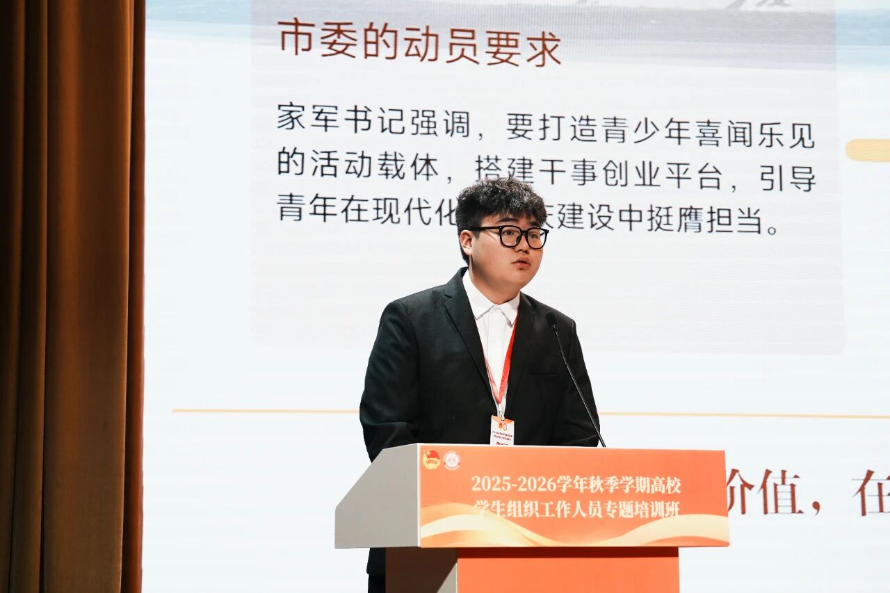 10月31日,培训会正式启动,全天开展多维度专题授课与交流研讨,为各高校学生工作搭建了高效学习平台。11月1日的交流汇报环节中,我校学生会凭借“我为同学办实事”项目的扎实成效,受邀参与专题汇报。校学生会主席团成员邓力同学以《深耕服务阵地 赋能青春成长》为题,聚焦同学就业急难愁盼,从组建“就业扒扒团” 精准匹配岗位、打造“重工青年说” 分享干货、开展“名企直通车”实践赋能三大维度,生动展示了校学生会创新服务模式的特色成果,充分彰显我校学子的责任担当与青春风采,赢得现场一致好评。