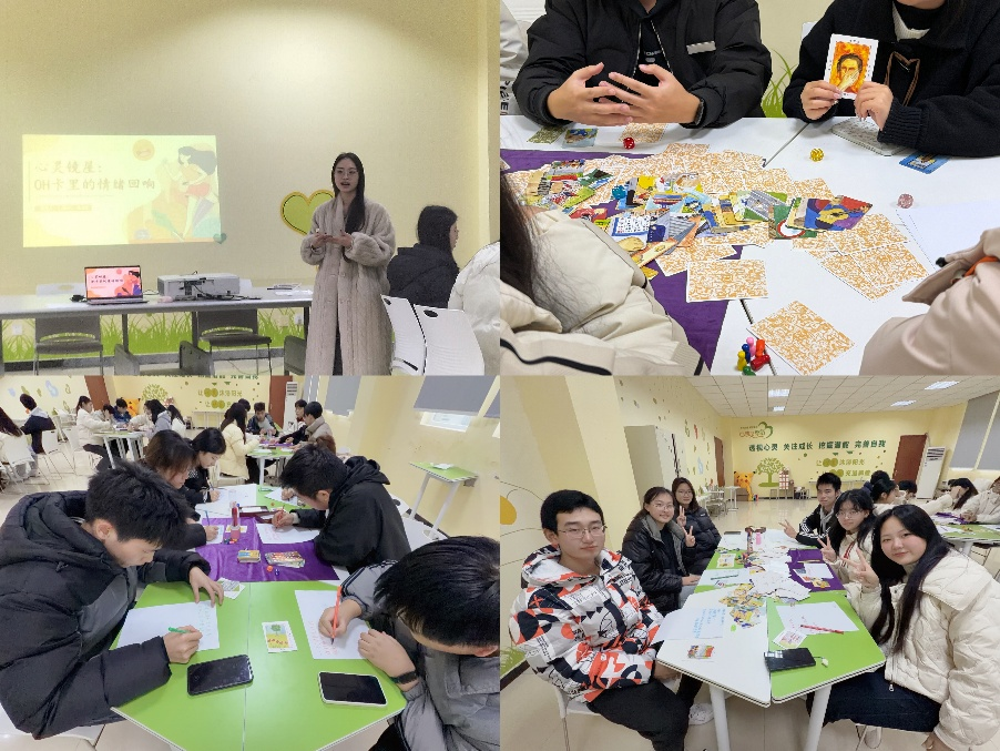 2025年12月25日(周四)下午2:00-3:00,心理健康教育中心的章淇莉老师面向电子信息学院与智能制造学院学生,组织开展了一场以“心灵镜屋:OH卡里的情绪回响”为主题的心理团体辅导活动(办公楼502),参与者共31人。此次活动通过OH卡牌这一心理学工具,引导学生觉察、命名、接纳并转化自身情绪,提升情绪管理能力与自我关怀意识。